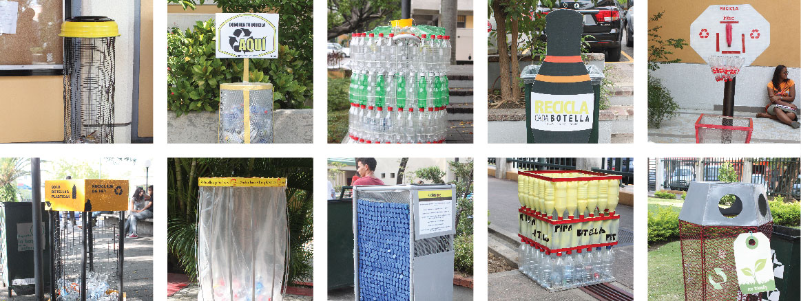 ¿Cómo, entonces, encontrar la manera de hacer la recolección más atractiva? Buscando a los expertos. En primer lugar, se pusieron en contacto con la coordinadora de la carrera de Diseño Industrial, Arancha Toribio, y de ahí surgió la idea de asignar a los estudiantes de la materia Diseño y Entorno II el desarrollo de zafacones solo para botellas plásticas con la observación de que debía identificarse que estos recipientes eran exclusivos para el desecho de plásticos.