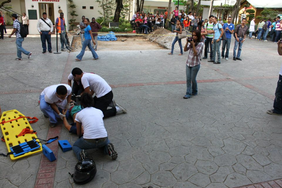 Este simulacro fue elaborado por un grupo de estudiantes de medicinas, los cuales buscan concientizar a toda la población estudiantil sobre la importancia de la emergenciología o medicina de emergencia. En el simulacro se puede apreciar cuales son las técnicas o métodos correctos para estabilizar a una persona que ha sufrido un accidente.