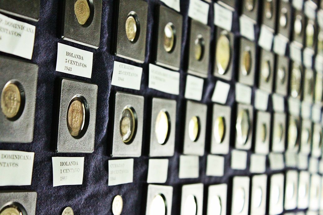 Durante años le dio vueltas a la idea de exponer su colección en INTEC hasta que lo logró y desde hace un mes se exhiben en el lobby de la Sala Julio Ravelo de la Fuente de la Biblioteca con el título “La moneda: base del comercio internacional”. Más de 120 piezas tanto del siglo XIX como del XX se muestran discretamente en un escaparate de cristal: rupias de India, kopeks de Rusia, florines holandeses, francos franceses y así, monedas de Gran Bretaña, Sudáfrica, New Foundland, Australia, Guyana Británica, Curasao y una buena representación de piezas descontinuadas de República Dominicana y Estados Unidos, entre otros países. Cada una tiene una historia.