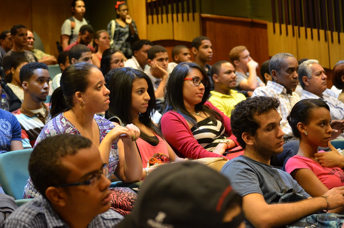 La conferencia, que se realizó en el auditorio Osvaldo García de la Concha, fue encabezada por la vicerrectora de Investigación y Vinculación, Indhira De Jesús y la directora ejecutiva de Investigaciones del INTEC, Andrea Paz, así como decenas de estudiantes y profesores.