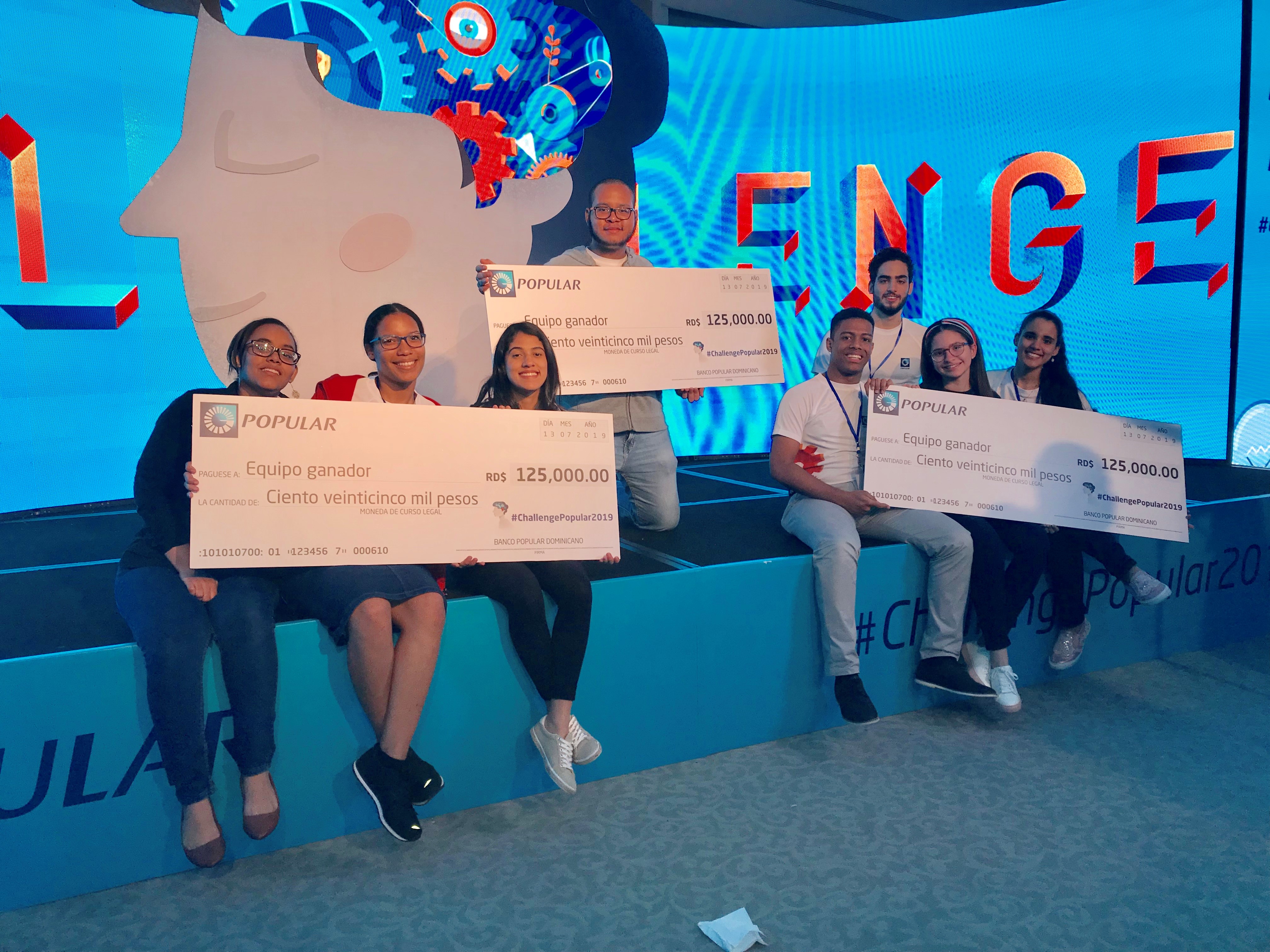 Los equipos ganadores de los tres primeros lugares recibieron un premio en metálico de 125 mil pesos. Los ganadores del primer lugar, en adición al premio metálico, podrán optar por trabajar como pasantes en el Banco Popular Dominicano, en el desarrollo del proyecto.