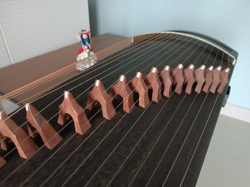 La estructura del Guzheng consta de una caja rectangular de madera con columna de cítara, en la que el marco de cuerda puede moverse libremente.