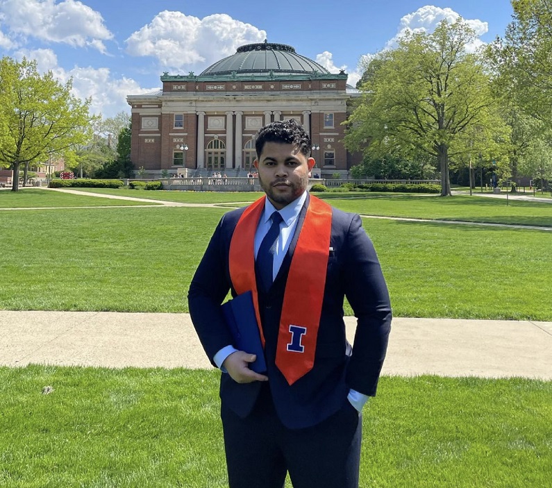 Fue en julio de 2019 cuando el joven, ya titulado como ingeniero civil por INTEC, viajó hacia la Urbana-Champaign, a solo dos horas de Chicago, para realizar sus estudios de postgrado.